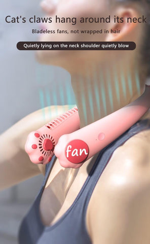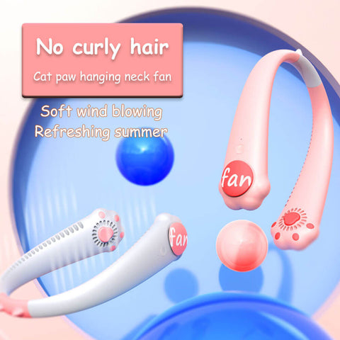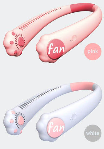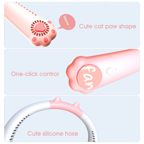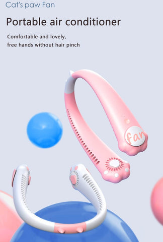 Cat Paws Neck Fan - a portable air conditioner hanging on your neck, it is light-weight and designed with unique cat paw shape, it is super cute and comfortable, keeping you cool whether indoor and outdoor, suitable for traveling, hiking, or any outdoor activities.