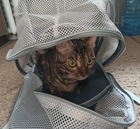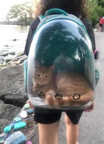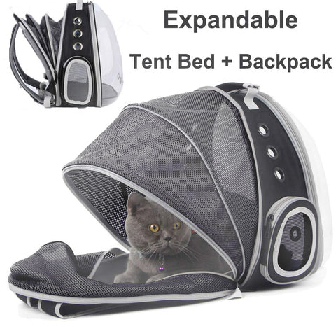 TRANSPARENT BUBBLE FRONT + EXPANDABLE BACK - This cat backpack carrier increase your pet's visual space via front transparent hard shell, gives more room and play time inside by expandable back panel. The real ever bigger expandable cat backpacks