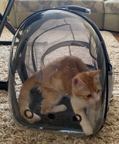 BREATHABLE SPACE CAPSULE BUBBLE CAT BACKPACK - Extra 9 vent holes around this carrier backpack and two side windows to perform great air circulation inside. Expanded back panel to be a giant tent bed for your furry friends to enjoy outdoor time with nature and sunshine well without feeling stuffiness in the backpack, the best ventilation ever.
